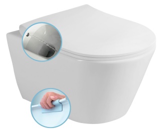 AVVA CLEANWASH závěsná WC mísa, s bidetovou sprškou, Rimless, 35,5x53cm, bílá