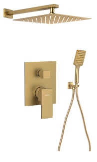 CUBEMIX podomítkový sprchový set s pákovou baterií, 2 výstupy, vyústění, zlato mat