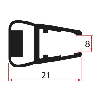 Magnetické těsnění ploché, sklo 8mm, 2000mm, černá