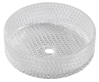MARAGUA skleněné gravírované umyvadlo na desku Ø 39,5cm, čirá