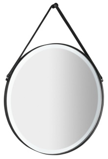 ORBITER kulaté zrcadlo s LED osvětlením ø 70cm, kožený pásek, černá mat