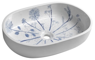 PRIORI keramické umyvadlo na desku, 60x40cm, bílá s modrým vzorem