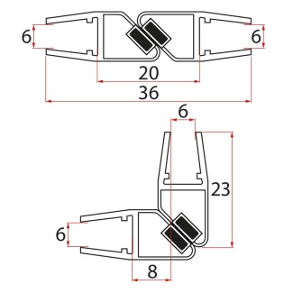 Set magnetických těsnění 45°pro sklo 6/6mm, 1900mm