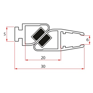 Set magnetických těsnění 45° pro sklo 6mm a profil, 1900mm