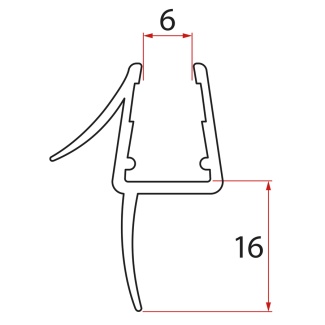 Spodní těsnění dveře čtvrtkruh, 6mm, 690mm