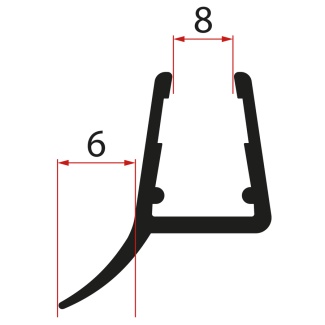 Spodní těsnění na dveře, sklo 8mm, 1000mm, černá