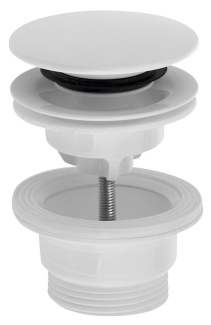 Umyvadlová výpust 5/4“, click-clack, velká zátka, 4-45mm, ABS/bílá
